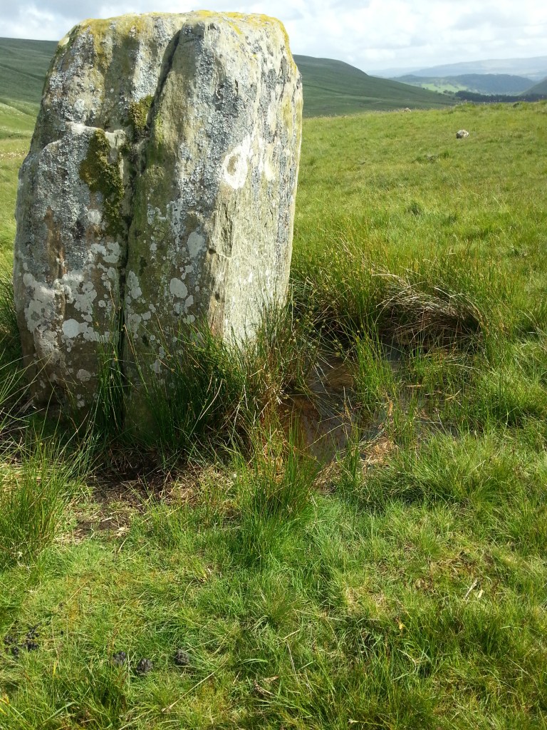 There is a megalithic complex in the valley called Cerrig Duon (the black stones), with a stone circle, some stone rows, and some large single stones, including this one, called Maen Mawr (Big Stone). To get to the stones you need to cross the river, which is always a challenge, and I suspect dangerous after rain!