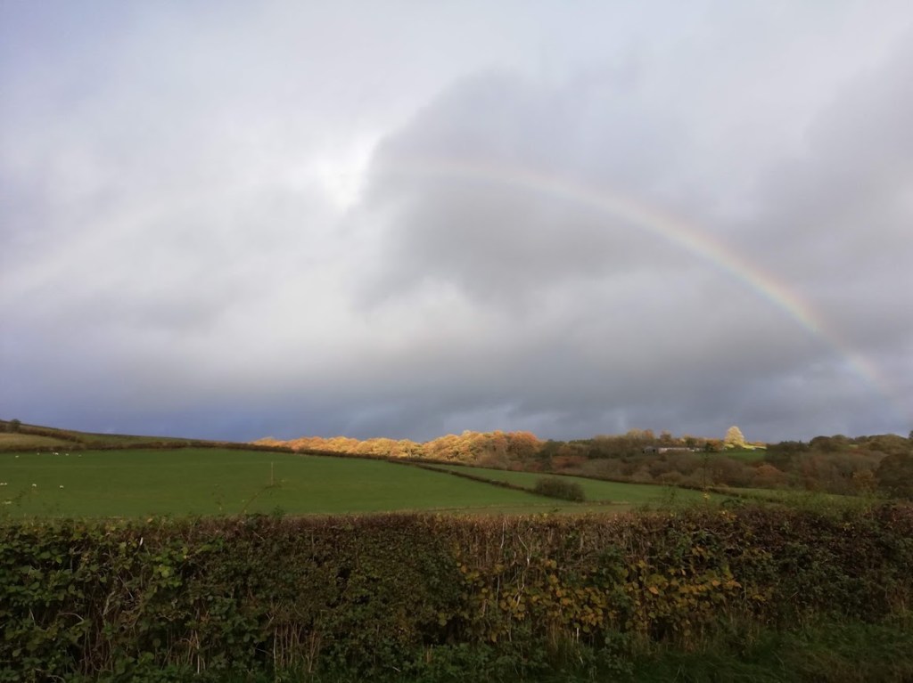 Here’s a picture of a rainbow over the hill behind Nantygroes: